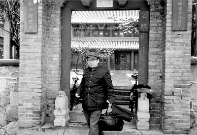 徐通鏘從(cong) 北京大學中文係門前走過。
