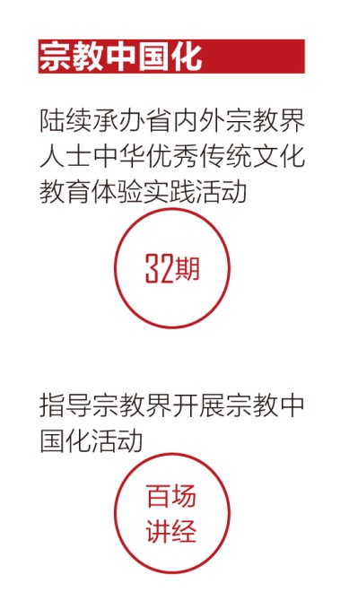 山東(dong) 不斷創新探索宗教中國化的形式和內(nei) 容,教育引導宗教界人士和信教群眾(zhong) 培育和踐行社會(hui) 主義(yi) 核心價(jia) 值觀、弘揚中華優(you) 秀傳(chuan) 統文化,不斷增進“五個(ge) 認同”。加強理論研究,發揮儒家文化發祥地和紅色文化富集地優(you) 勢,成立山東(dong) 省民族宗教研究會(hui) 、山東(dong) 宗教界優(you) 秀傳(chuan) 統文化教育實踐基地,先後舉(ju) 辦“儒學與(yu) 宗教中國化”研討會(hui) 、宗教中國化座談會(hui) 等活動。強化教育引導,陸續承辦了32期省內(nei) 外宗教界人士中華優(you) 秀傳(chuan) 統文化教育體(ti) 驗實踐活動,指導宗教界開展了宗教中國化“百場講經”活動,常態化抓好宗教場所“四進”活動,努力推動宗教教義(yi) 與(yu) 齊魯文化有機融合,取得了春風化雨、潤物無聲的良好效果。