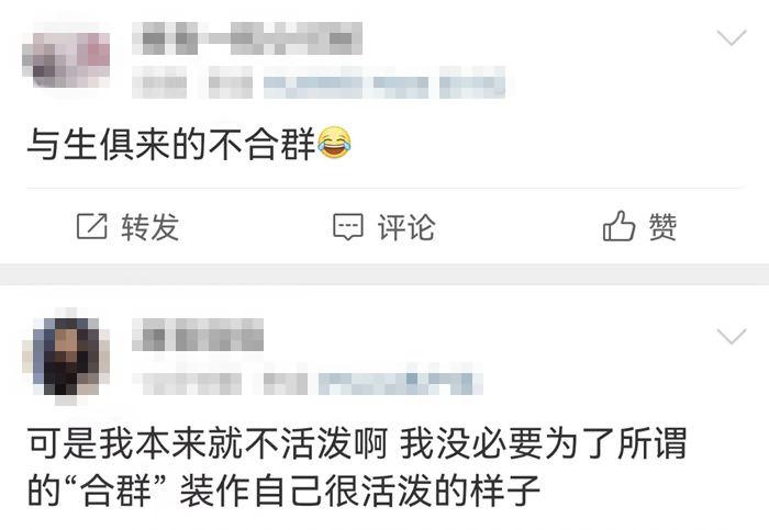 也有觀點認為(wei) ,當“盲目合群”時,一個(ge) 人可能並不會(hui) 感覺輕鬆,倒不如嚐試消除外界帶來的壓力,活得更自在一些。