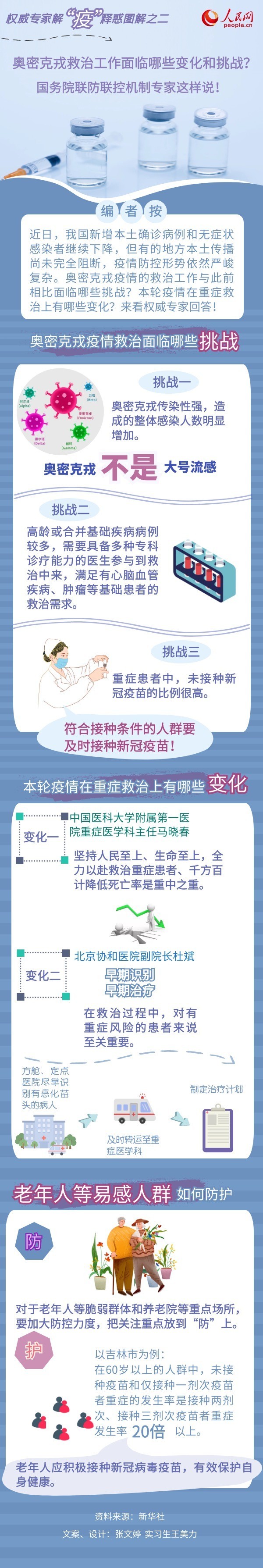 編者按:新冠肺炎疫情發生以來,我國堅持人民至上、生命至上,堅持外防輸入、內(nei) 防反彈,堅持動態清零,因時因勢不斷調整防控措施。近日,國務院聯防聯控機製綜合組專(zhuan) 家就當前我國為(wei) 什麽(me) 不能放鬆疫情防控、奧密克戎疫情的救治工作與(yu) 此前相比有哪些新變化和新挑戰等一係列與(yu) 疫情防控有關(guan) 的最新問題進行權威解答。今日起,人民網推出係列圖解,為(wei) 網友解“疫”釋惑。