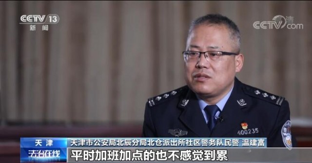 天津市公安局北辰分局北倉(cang) 派出所社區警務隊民警 溫建富:管的時間也長了,老百姓這關(guan) 係也融洽了,建立了深厚的感情,關(guan) 係特別好,平時加班加點也不感到累。