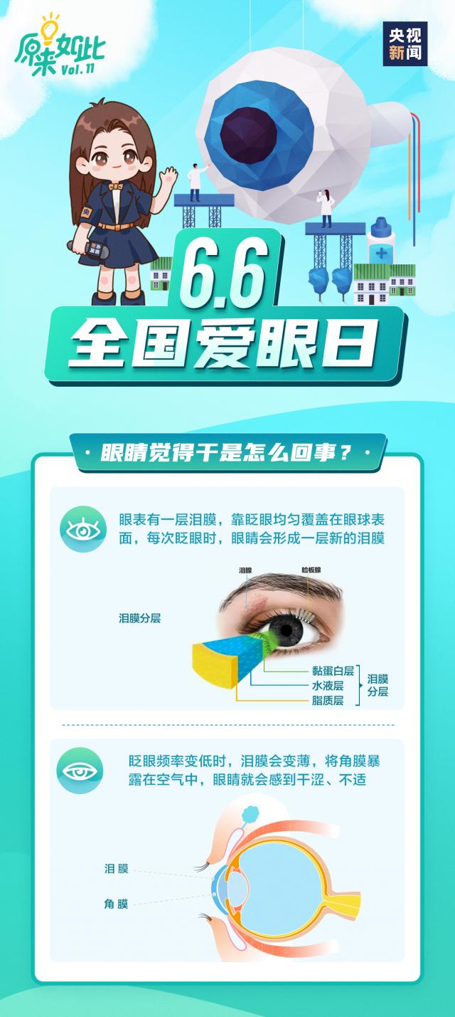 今天(6月6日)是全國愛眼日。眼睛幹澀怎麽(me) 辦?洗眼液能用嗎?眼藥水如何挑選?保護眼睛,一起了解↓