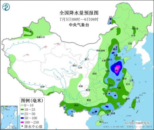 明天,內(nei) 蒙古中東(dong) 部、京津冀、黃淮中東(dong) 部、西南地區南部、江淮大部、江漢東(dong) 部、江南中東(dong) 部、華南大部、台灣島等地的部分地區有中到大雨,其中,山東(dong) 中南部、河南東(dong) 部、安徽北部、江蘇北部、京津冀、廣東(dong) 北部等地的部分地區有暴雨,山東(dong) 南部、安徽北部、江蘇北部、河南東(dong) 部等地局地大暴雨(100~180毫米)。