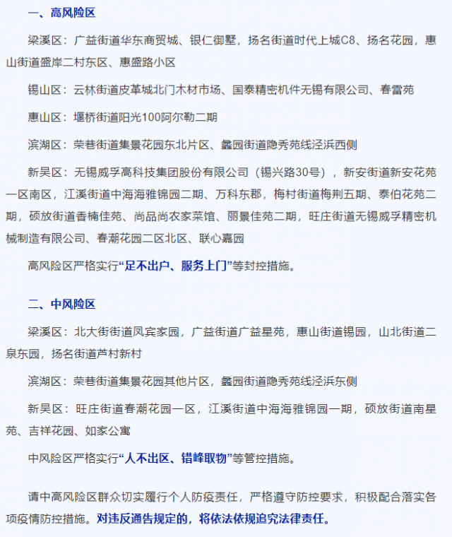 為(wei) 有效阻斷疫情傳(chuan) 播,切實保障廣大人民群眾(zhong) 生命安全和身體(ti) 健康,決(jue) 定劃分高風險區、中風險區,現通告如下: