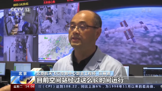 北京航天飛行控製中心副總工程師 汪賽進:目前空間站經過這麽(me) 長時間運行,工況正常,姿態穩定,能源平衡。