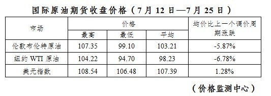 根據國家發改委消息,新一輪成品油調價(jia) 窗口將於(yu) 今天(7月26日)24時開啟。據國家發改委價(jia) 格監測中心監測,本輪成品油調價(jia) 周期內(nei) (7月12日—7月25日)國際油價(jia) 繼續下降。平均來看,倫(lun) 敦布倫(lun) 特、紐約WTI油價(jia) 比上輪調價(jia) 周期下降6.32%。