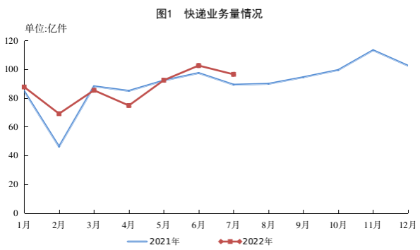 7月份,全國快遞服務企業(ye) 業(ye) 務量完成96.5億(yi) 件,同比增長8.0%;業(ye) 務收入完成898.2億(yi) 元,同比增長8.6%。