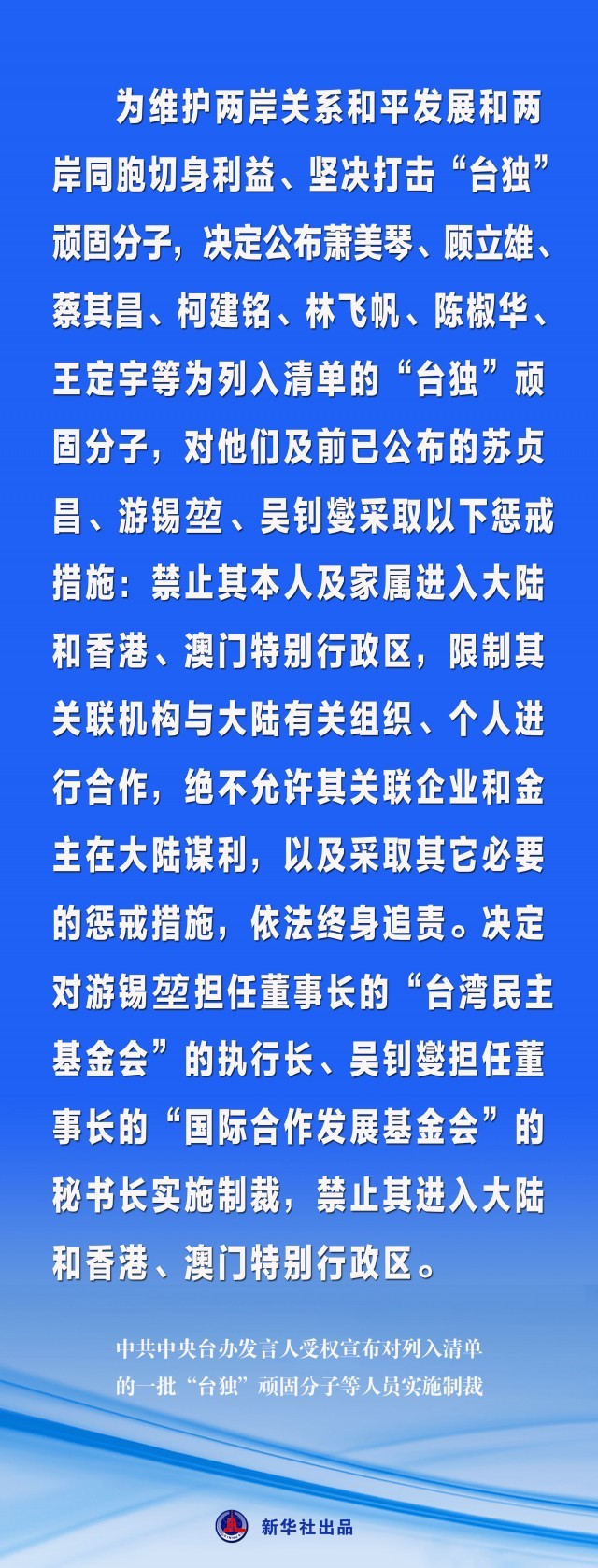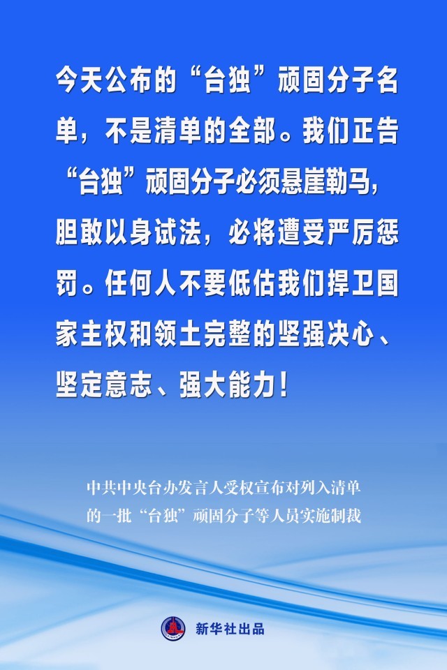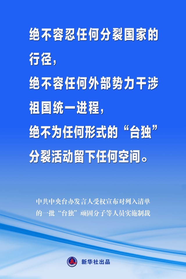 海報丨中共中央台辦發言人受權宣布對列入清單的一批“台獨”頑固分子等人員實施製裁