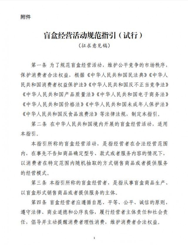 附件:盲盒經營活動規範指引(試行)(征求意見稿)