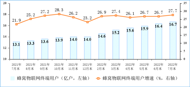 移動網絡連接終端中物聯網用戶占比近半,IPTV用戶數穩步增加。截至7月末,三家基礎電信企業(ye) 發展蜂窩物聯網終端用戶16.67億(yi) 戶,比上年末淨增2.7億(yi) 戶,占移動網終端連接數(包括移動電話用戶和蜂窩物聯網終端用戶)的比重已達49.9%。IPTV(網絡電視)總用戶數達3.68億(yi) 戶,比上年末淨增1979萬(wan) 戶。