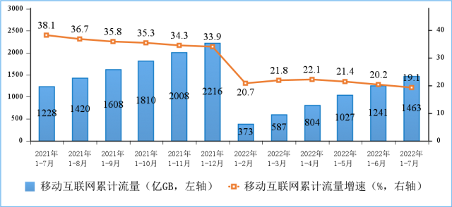 移動互聯網流量較快增長。1—7月份,移動互聯網累計流量達1463億(yi) GB,同比增長19.1%。截至7月末,移動互聯網用戶數達14.55億(yi) 戶,比上年末淨增3955萬(wan) 戶。7月當月戶均移動互聯網接入流量(DOU)達到15.27GB/戶·月,同比增長8.5%,比上年底高0.55GB/戶·月。