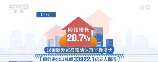 央視網消息:今年1—7月份,我國服務進出口總額達33922.1億(yi) 元,我國服務貿易繼續保持平穩增長。