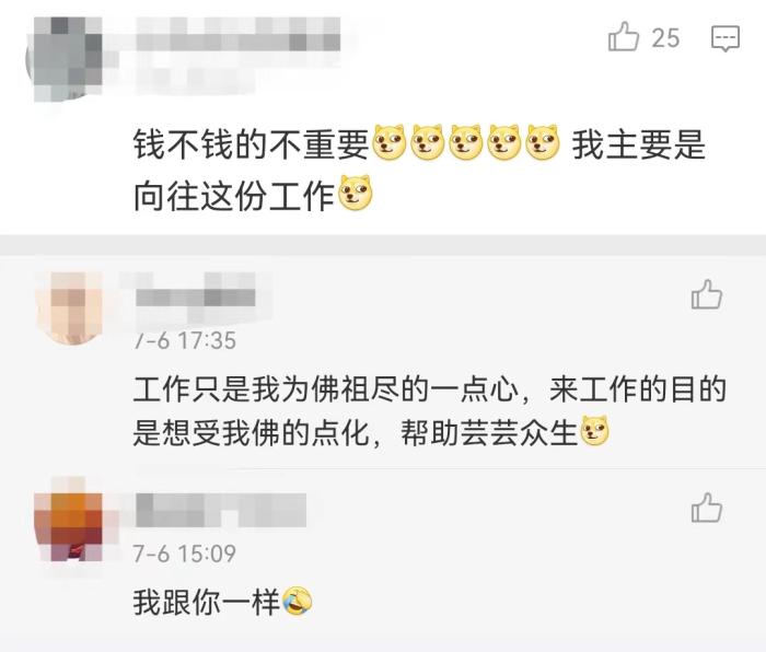 有不少網友在招聘啟事下留言:錢不錢的不重要,主要是向往這份工作;這不是我夢中情工嗎……