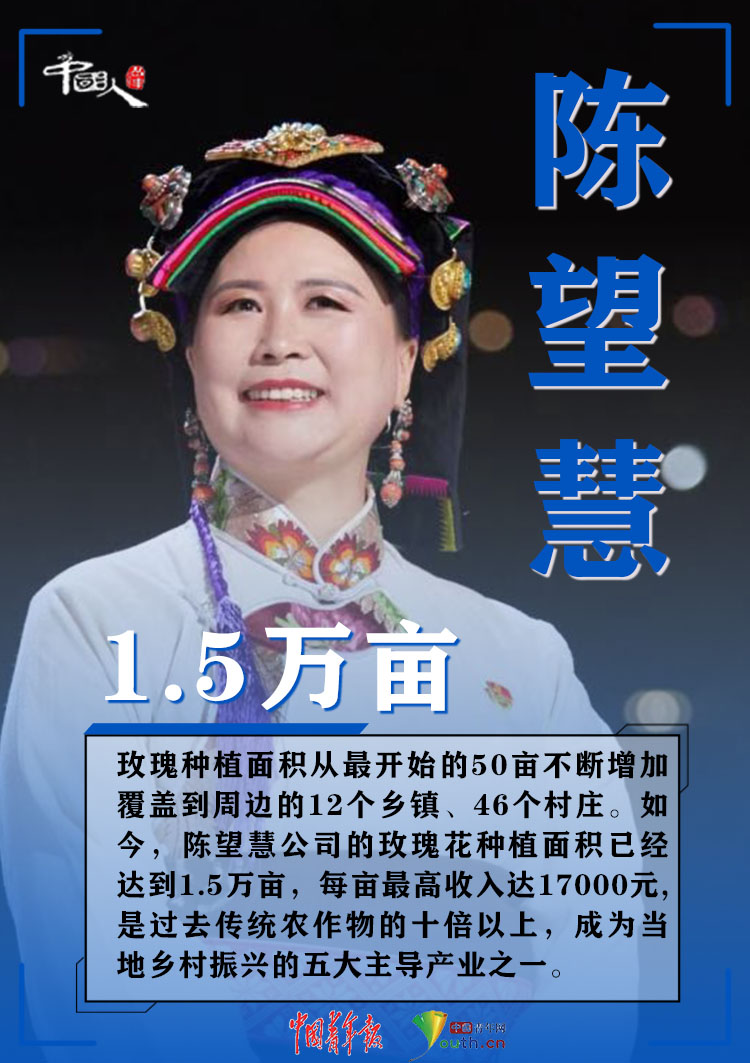 這些年間,陳望慧先後獲得了“全國優(you) 秀共產(chan) 黨(dang) 員”“全國脫貧攻堅先進個(ge) 人”“全國三八紅旗手”“全國脫貧攻堅奮進獎”等榮譽。