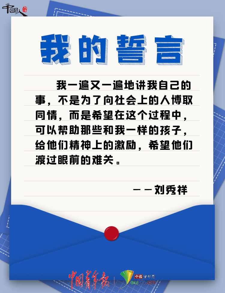 他說:“我一遍又一遍地講我自己的事,不是為(wei) 了向社會(hui) 上的人博取同情,而是希望在這個(ge) 過程中,可以幫助那些和我一樣的孩子,給他們(men) 精神上的激勵,希望他們(men) 渡過眼前的難關(guan) 。”