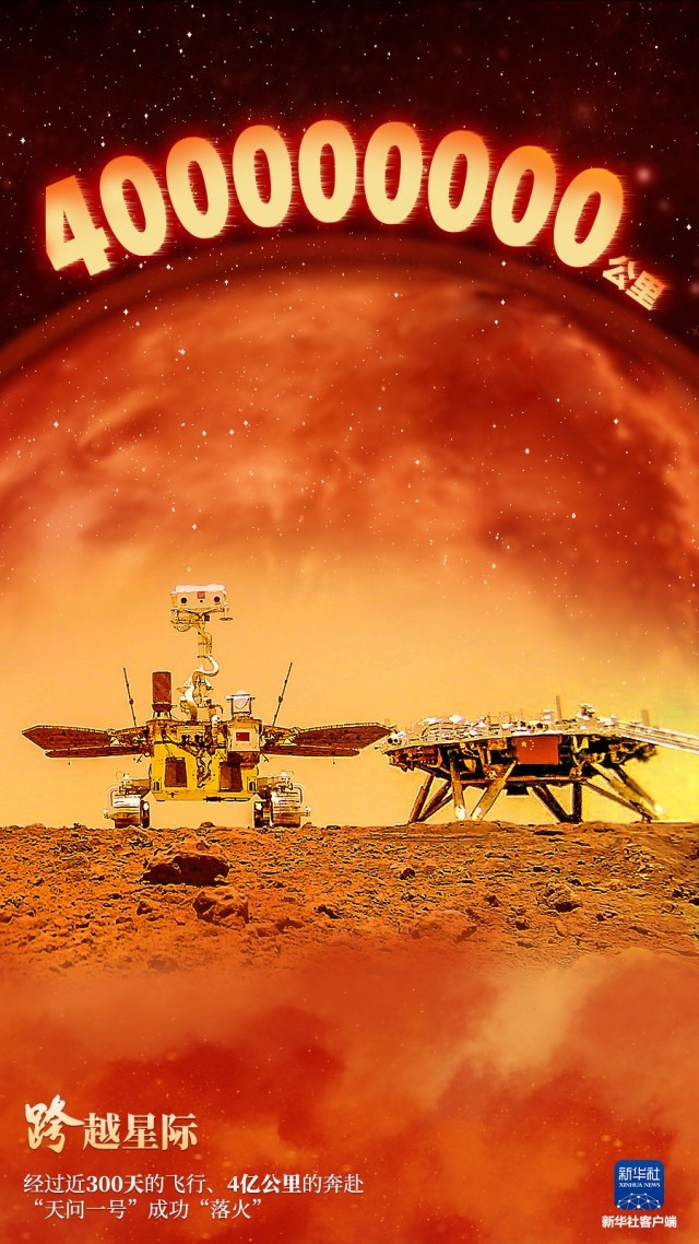 經過近300天的飛行、4億(yi) 公裏的奔赴,“天問一號”成功“落火”;