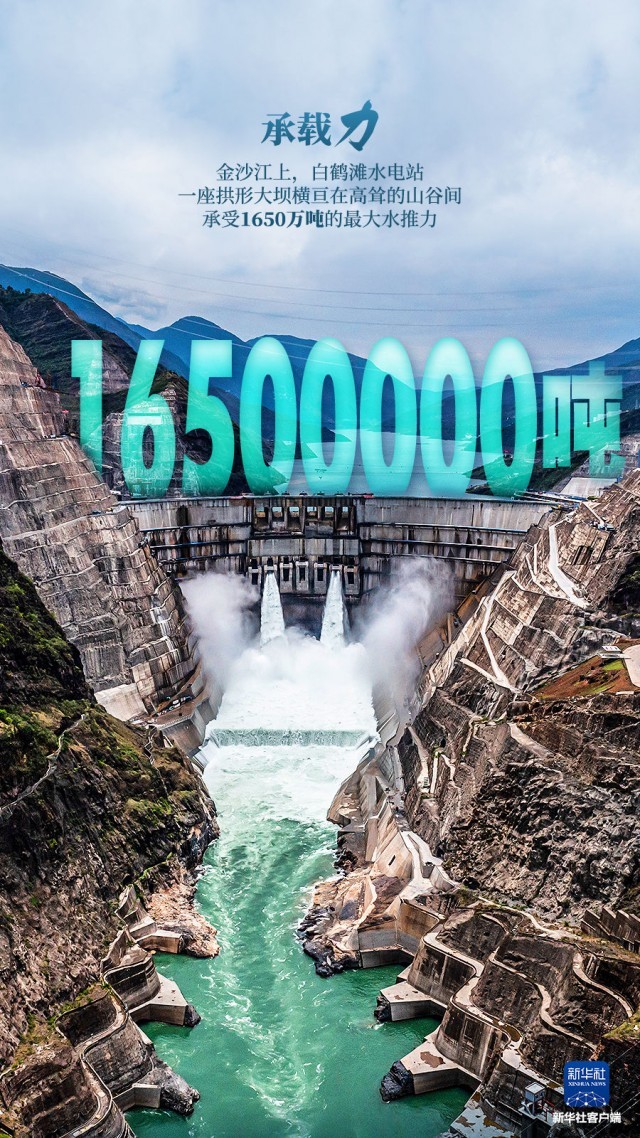 金沙江上,白鶴灘水電站,一座拱形大壩橫亙(gen) 在高聳的山穀間,承受1650萬(wan) 噸的最大水推力。