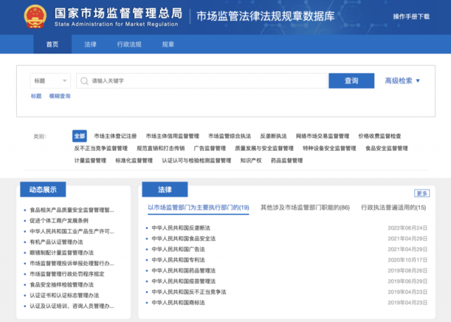市場監管法律法規規章數據庫正式上線