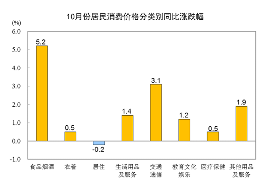 國家統計局:10月份居民消費價格同比上漲2.1%,環比上漲0.1%