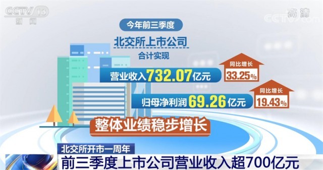 今年前三季度,北交所上市公司合計實現營業(ye) 收入732.07億(yi) 元,同比增長33.25%;實現歸母淨利潤69.26億(yi) 元,同比增長19.43%,整體(ti) 業(ye) 績穩步增長。88家公司發布現金分紅方案,分紅公司家數占比超7成,合計分紅金額達23.61億(yi) 元,惠及近80萬(wan) 名投資者。