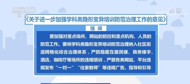 央視網消息:近日,教育部辦公廳等十二部門聯合印發了《關(guan) 於(yu) 進一步加強學科類隱形變異培訓防範治理工作的意見》。《意見》要求,到2024年6月,全麵清除隱形變異培訓。