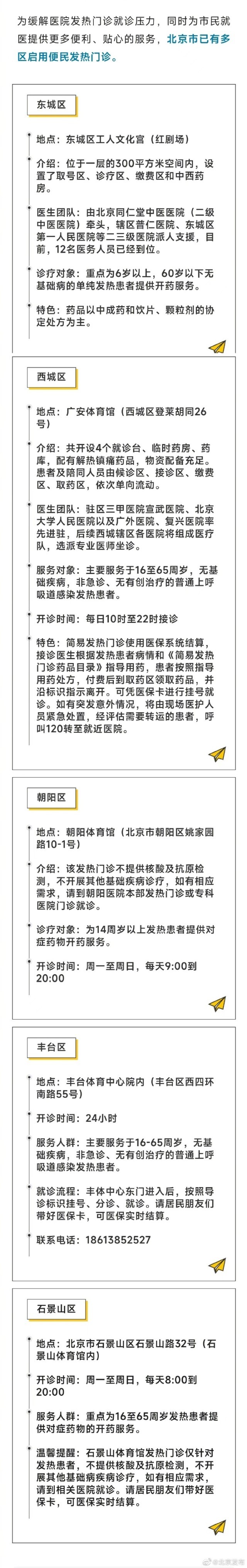 央視網消息:據@北京發布 微博,為(wei) 緩解醫院發熱門診就診壓力,同時為(wei) 市民就醫提供更多便利、貼心的服務,北京市已有多區啟用便民發熱門診。