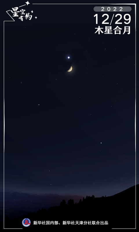 新華社天津12月27日電(記者周潤健)天文科普專(zhuan) 家介紹,12月29日晚天宇將上演木星合月,這是2022年最後一場行星合月。屆時隻要天氣晴好,我國公眾(zhong) 可在南方天空欣賞到明亮木星與(yu) 一輪上弦月近距離競輝的唯美畫麵。