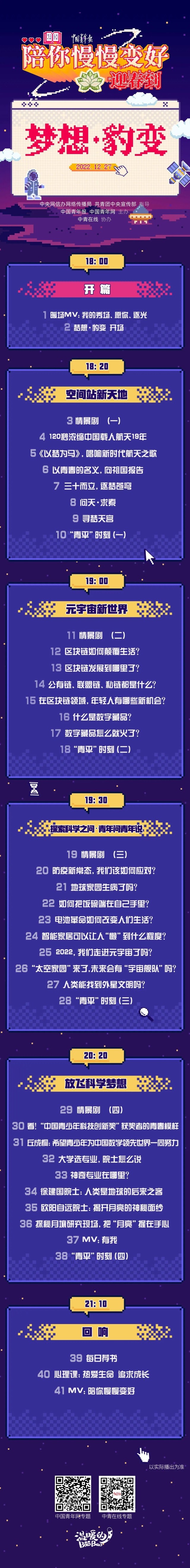 在這場聯播節目中,4位年輕記者將通過自己的經曆和故事,和大家一起回顧2022年與(yu) 科技創新有關(guan) 的瞬間,重溫那些帶給我們(men) “夢想”和“豹變”的激情時刻。聯播由空間站新天地、元宇宙新世界、探索科學之問、放飛科學夢想等四大篇章組成,重磅環節“探索科學之問”將聯合北京市科協,共同推出聯名款“青年問青年說”,青年科學家和大學生一起盤點這些熱點科技問題:防疫新常態,我們(men) 該如何應對?極端天氣頻發,地球家園生病了?2022年,我們(men) 走進元宇宙了嗎?“太空家園”來了,未來會(hui) 不會(hui) 有“宇宙艦隊”…… 12月27日,我們(men) 不見不散。