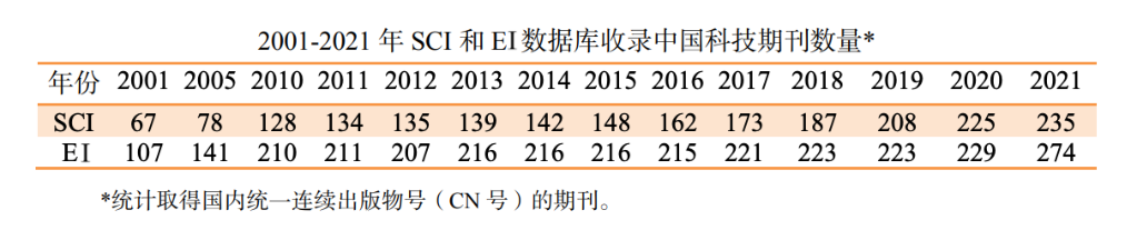 長期以來,與(yu) 國家科技實力和科研產(chan) 出水平相比,我國科技期刊發展相對滯後,國際顯示度偏低。該研究分析顯示,近年來,隨著我國加快高水平科技期刊建設,我國科技期刊的國際影響不斷擴大,被國際重要檢索係統收錄的期刊數量越來越多。2021年,科學引文索引(SCI)收錄中國科技期刊235種;工程索引(EI)收錄中國科技期刊274種;醫學索引(Medline)收錄中國科技期刊147種。
