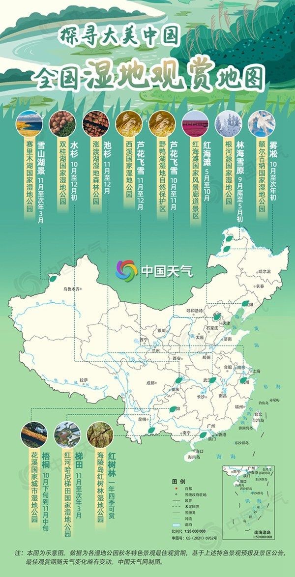 濕地不僅(jin) 能為(wei) 人們(men) 提供四季不同的可觀賞景觀,還是十分重要的自然生態係統,為(wei) 大量的動植物提供棲息地,既能保護生物的多樣性,也能調節氣候、淨化水質。有興(xing) 趣的朋友可根據最佳觀賞期前往觀賞,提醒大家出遊仍需注意佩戴口罩,做好健康防護工作。(中國天氣網 文/江漪 設計/任成英 數據支持/李靚)