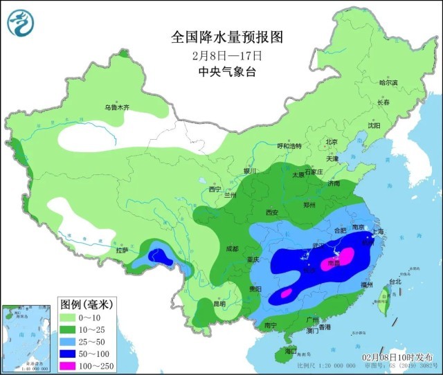 從(cong) 2月7日起,我國中東(dong) 部地區出現大範圍雨雪天氣。8日白天,甘肅中東(dong) 部、寧夏中南部、陝西中部等部分地區出現中到大雪或雨夾雪,陝西寶雞局地暴雪;湖南南部、江西中部、浙江西南部、福建北部、廣西東(dong) 北部等部分地區出現中到大雨,江西上饒局地暴雨。