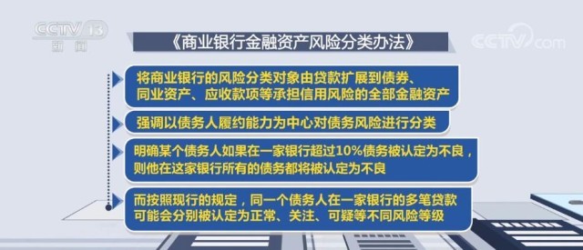 央視網消息:銀保監會(hui) 、中國人民銀行製定《商業(ye) 銀行金融資產(chan) 風險分類辦法》,於(yu) 2月11日正式對外發布。推動商業(ye) 銀行加強信用風險管理、提升服務實體(ti) 經濟水平。
