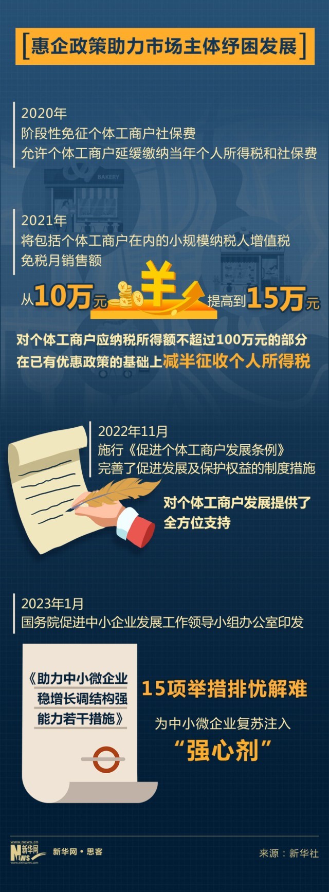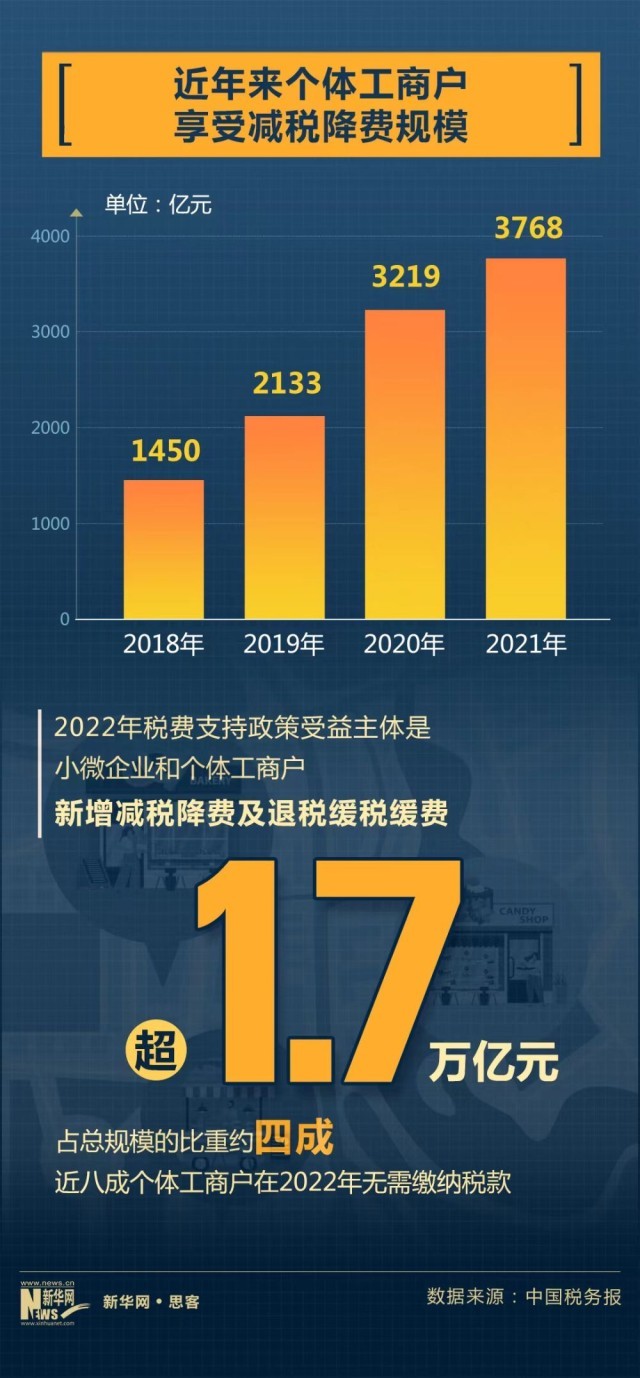 煥發個(ge) 體(ti) 經濟生機活力,離不開稅收“輸血給氧”。近年來,各地區、各部門也出台了一係列幫扶個(ge) 體(ti) 工商戶等小微市場主體(ti) 發展的政策措施,精準扶困。