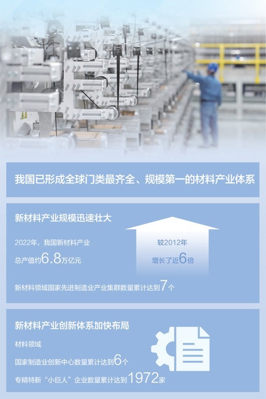 從(cong) 碳纖維到高溫超導的快速應用,是我國新材料產(chan) 業(ye) 蓬勃發展的生動腳注。“經過多年攻堅,目前我國已形成全球門類最齊全、規模第一的材料產(chan) 業(ye) 體(ti) 係。”工信部原材料工業(ye) 司有關(guan) 負責人說,近年來,我國新材料產(chan) 業(ye) 取得長足進步,彰顯發展活力與(yu) 韌性。