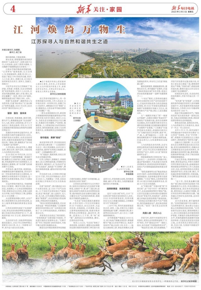 3月3日,新華每日電訊 新華關(guan) 注·家園刊載題為(wei) 《江河煥綺萬(wan) 物生 江蘇探尋人與(yu) 自然和諧共生之道》的報道。