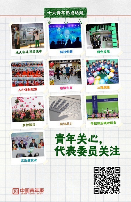 兩(liang) 會(hui) 前,團中央權益部、中國青年報社等機構聯合梳理了青年關(guan) 心的十大熱點話題。兩(liang) 會(hui) 期間,代表委員進行了回應。本報以漫畫形式進行梳理,形式新穎,被多家媒體(ti) 轉載。