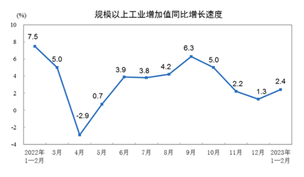 今年前2個月全國規模以上工業增加值同比增長2.4%