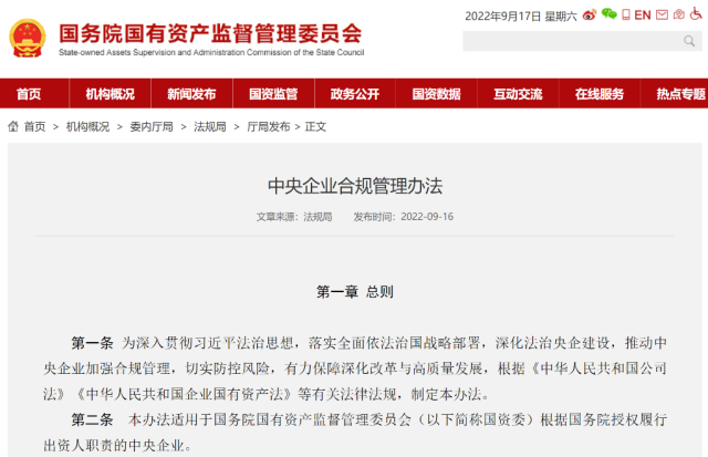 2022年,國資委印發《中央企業(ye) 合規管理辦法》。管理辦法在充分借鑒世界一流企業(ye) 先進經驗的基礎上,明確提出中央企業(ye) 應當結合實際設立首席合規官,不新增領導崗位和職數,由總法律顧問兼任,對企業(ye) 主要負責人負責,領導合規管理部門組織開展相關(guan) 工作,指導所屬單位加強合規管理。(記者王希)