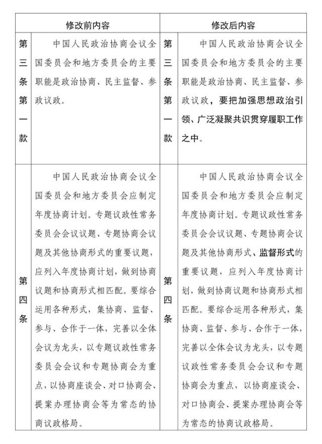 中國人民政治協商會(hui) 議章程 修改前後內(nei) 容對照表(4) 新華社發