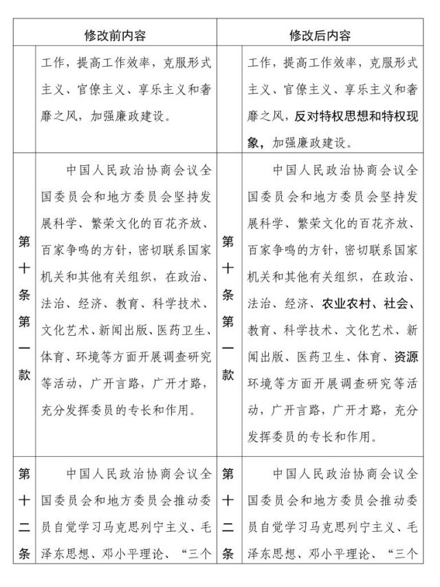 中國人民政治協商會(hui) 議章程 修改前後內(nei) 容對照表(12) 新華社發