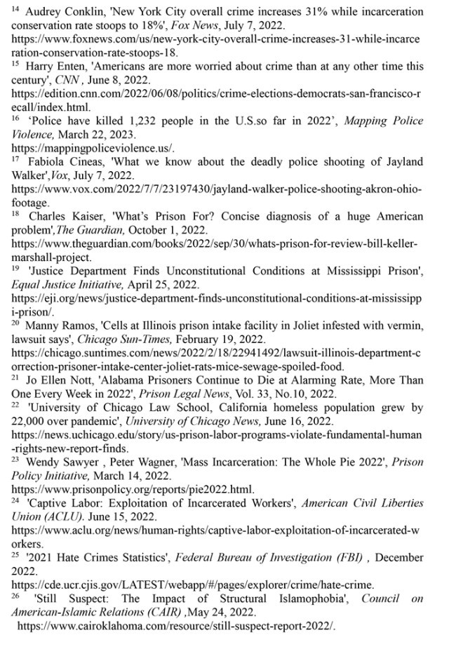 執法司法領域種族歧視根深蒂固。聯合國消除種族歧視委員會(hui) 的結論性報告指出,美國執法人員對有色人種和少數族裔群體(ti) 過度使用暴力並逍遙法外的情況仍然普遍存在;有色人種和少數族裔在美國司法係統中被逮捕、監禁和長期虐待的情況突出。(注73)“警察暴力地圖”網站的數據顯示,在2013年至2022年的警察殺人事件中,非洲裔被警察殺害的可能性是白人的2.78倍,手無寸鐵的非洲裔被警察殺害的可能性是手無寸鐵的白人的1.3倍。在波士頓、明尼阿波利斯和芝加哥,非洲裔被警察殺害的可能性更是白人的20多倍。(注74)美國國家公共電台2022年9月27日報道,國家免責登記處發布的報告指出,非洲裔在美國人口中所占比例不到14%,但在美國被誤判犯有嚴(yan) 重罪行並在至少服完部分刑期後獲釋的所有人中,非洲裔占了53%;美國非洲裔因三項重大罪行被錯誤定罪的可能性是白人的7倍,非洲裔因毒品犯罪被錯誤定罪的可能性是其他人的19倍。(注75)美國國家學院出版的《美國監禁的增長:探索原因和後果》一書(shu) 指出,滲透著種族主義(yi) 的刑事司法係統“正日益成為(wei) 一個(ge) 更大的汙名化和長期邊緣化係統的主要通道”。(注76)