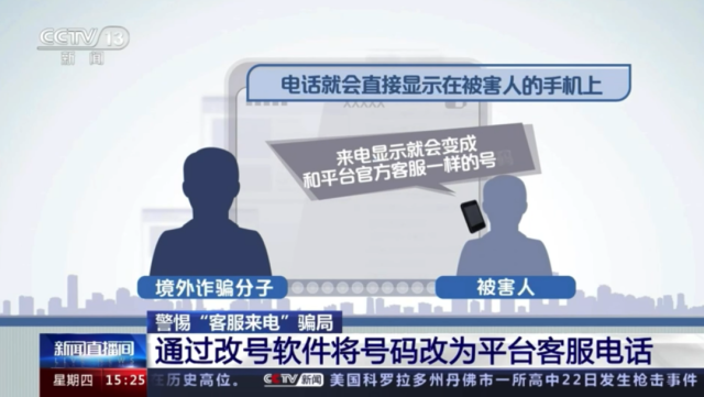 經過這樣的層層偽(wei) 裝,境外詐騙電話就變成了客服來電。很多被害人一看是平台的官方客服來電就很容易信以為(wei) 真,認為(wei) 真是這個(ge) 公司的客服打來的服務電話,放鬆警惕,相信了電話那頭“客服人員”的詐騙話術,掉入了詐騙團夥(huo) 的圈套。
