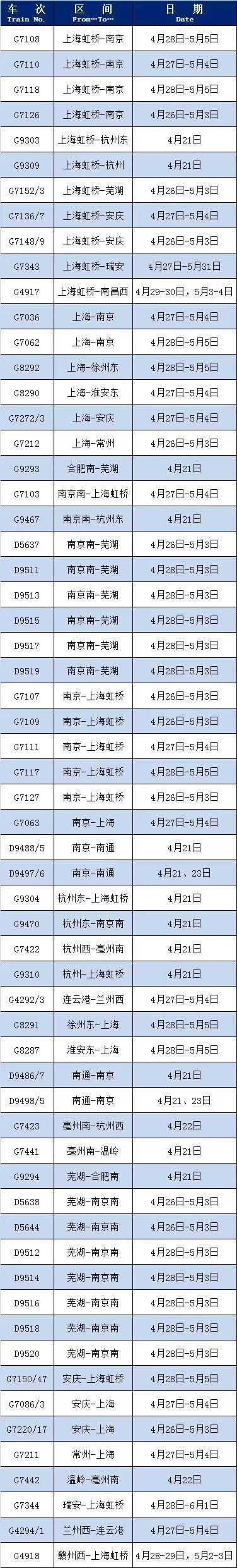 長三角鐵路五一假期增開多趟列車 詳細車次公布