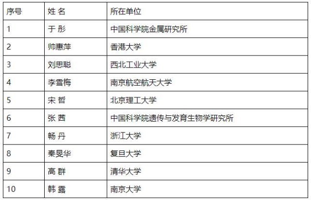 第十八屆中國青年女科學家獎揭曉 20人5支團隊獲獎