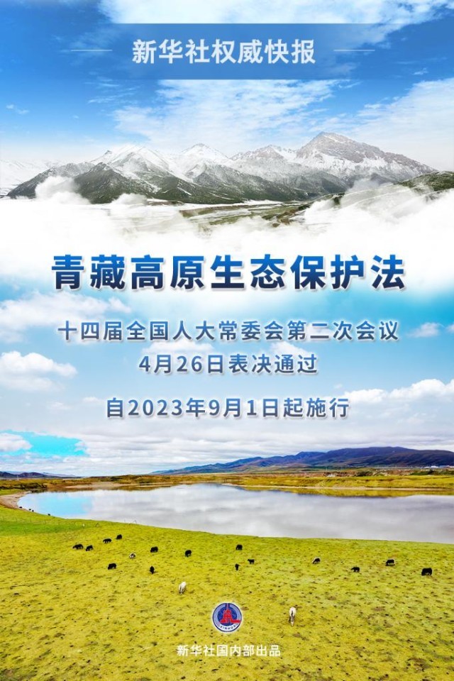 4月26日,十四屆全國人大常委會(hui) 第二次會(hui) 議表決(jue) 通過青藏高原生態保護法。法律自2023年9月1日起施行。