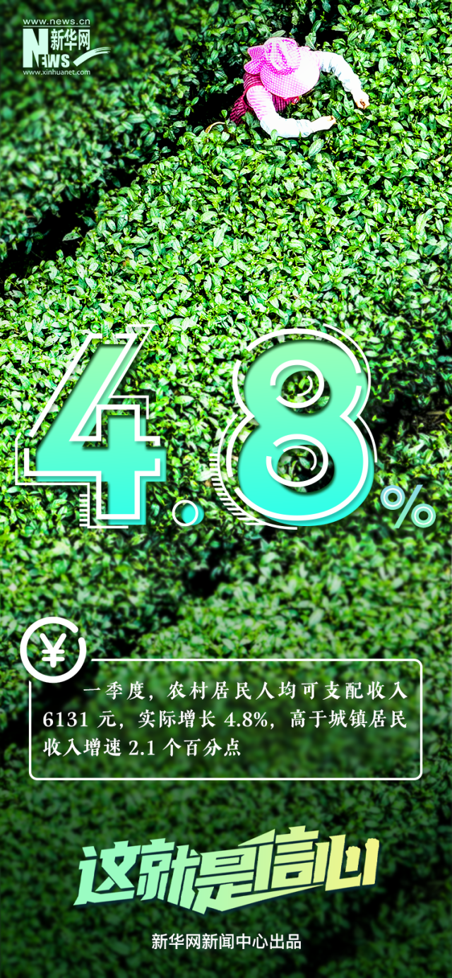 今年一季度,農(nong) 村居民人均可支配收入6131元,實際增長4.8%;一季度全國城鎮新增就業(ye) 297萬(wan) 人,同比增加4%;一季度豬肉產(chan) 量同比增長1.9%,畜禽和水產(chan) 品全麵增產(chan) ,蔬菜和水果供應充足......剛剛過去的一季度,多項民生紅利集中釋放,跟隨這組數據一起感知。