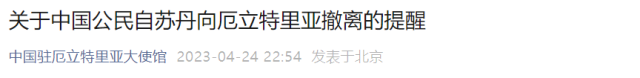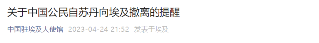 4月24日晚間,我國駐埃及使館發布關(guan) 於(yu) 中國公民自蘇丹向埃及撤離的提醒: