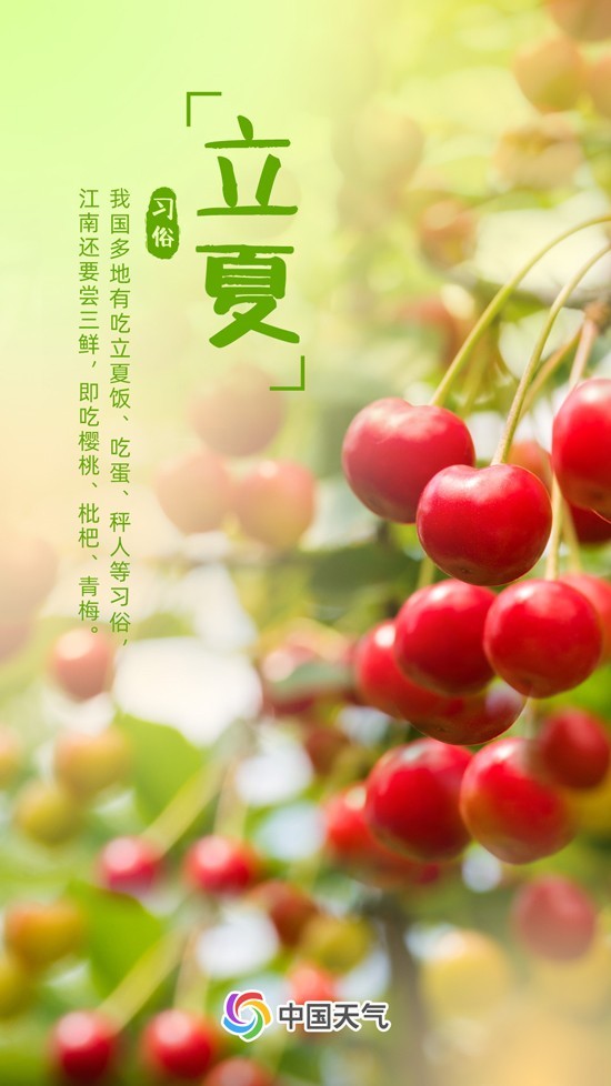 立夏還是品嚐美食的好時節,許多家庭會(hui) 將赤豆、黃豆、黑豆、豌豆、綠豆做成“立夏飯”,寓意“五穀豐(feng) 登”。江南有“嚐三鮮”的習(xi) 俗,即品嚐甜蜜櫻桃、爽口青梅以及清甜枇杷。