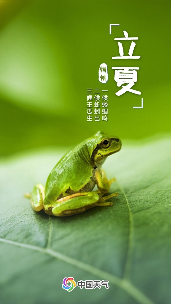 立夏一候“螻蟈鳴”,也叫“蛙始鳴”,說的是這一時節青蛙逐漸開始活躍、聒噪起來;二候“蚯蚓出”,此時蚯蚓懶洋洋地開始翻鬆泥土了;三候“王瓜生”,這裏的王瓜泛指藤蔓類植物,此時開始攀爬生長,綠意盎然。立夏時節,萬(wan) 物已褪去了春日的青嫩,開始日日攀長,至此萬(wan) 物繁茂。