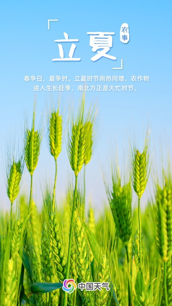如果說春是生的季節,那麽(me) 夏就是長的季節。《曆書(shu) 》曰:“鬥指東(dong) 南,維為(wei) 立夏,萬(wan) 物至此皆長大,故名立夏也。”立夏,是標示萬(wan) 物進入旺季生長的一個(ge) 重要節氣。此時,日照增加、氣溫漸升、雷雨增多,農(nong) 作物進入了茁壯成長階段。春播作物漸漸長大,夏收作物進入生長後期,冬小麥揚花灌漿,油菜接近成熟,大江南北都進入了農(nong) 事繁忙時期。